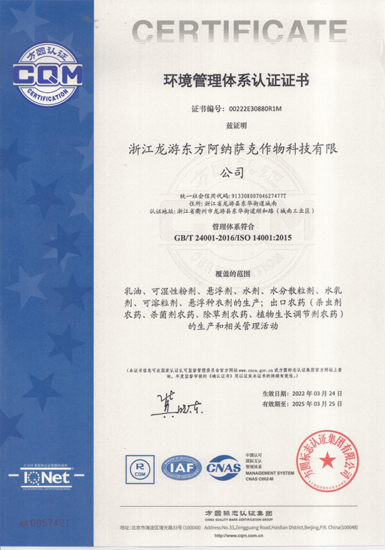 環(huán)境管理體系認證證書
