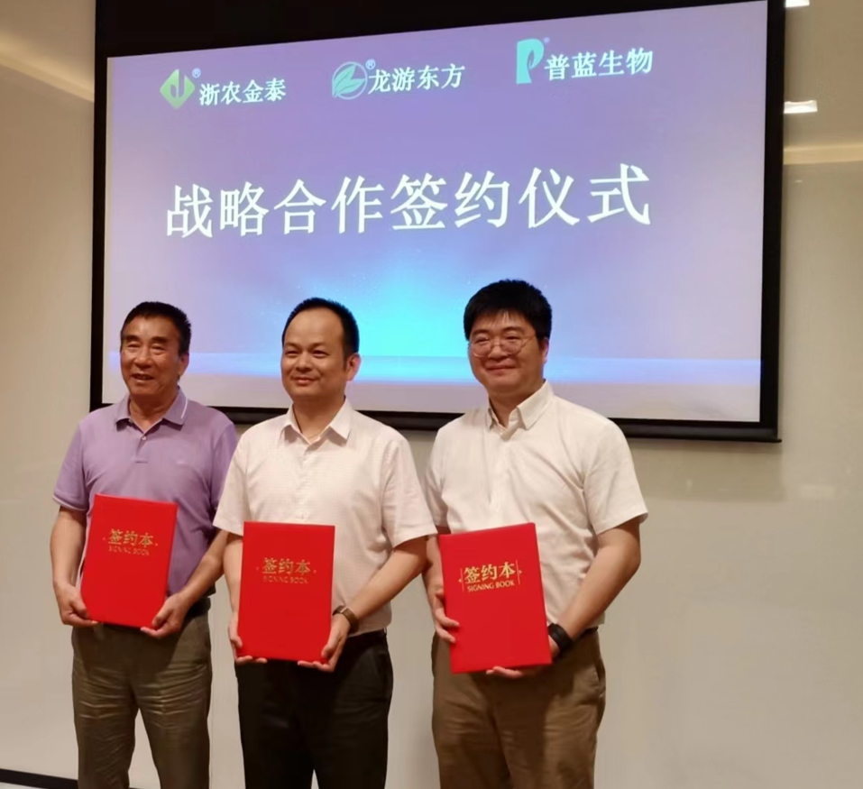 2022年6月13日,浙農(nóng)股份旗下子公司浙江浙農(nóng)金泰生物科技有限公司、浙江龍游東方阿納薩克作物科技有限公司和杭州普藍生物科技有限公司在浙江杭州隆重舉行戰(zhàn)略合作簽約儀式。浙農(nóng)金泰總經(jīng)理鄔王城、總經(jīng)理助理楊森,龍游東方總經(jīng)理徐建自、副總經(jīng)理龔國華,杭州普藍總經(jīng)理徐迪凡、副總經(jīng)理賴軍麗出席簽約儀式。