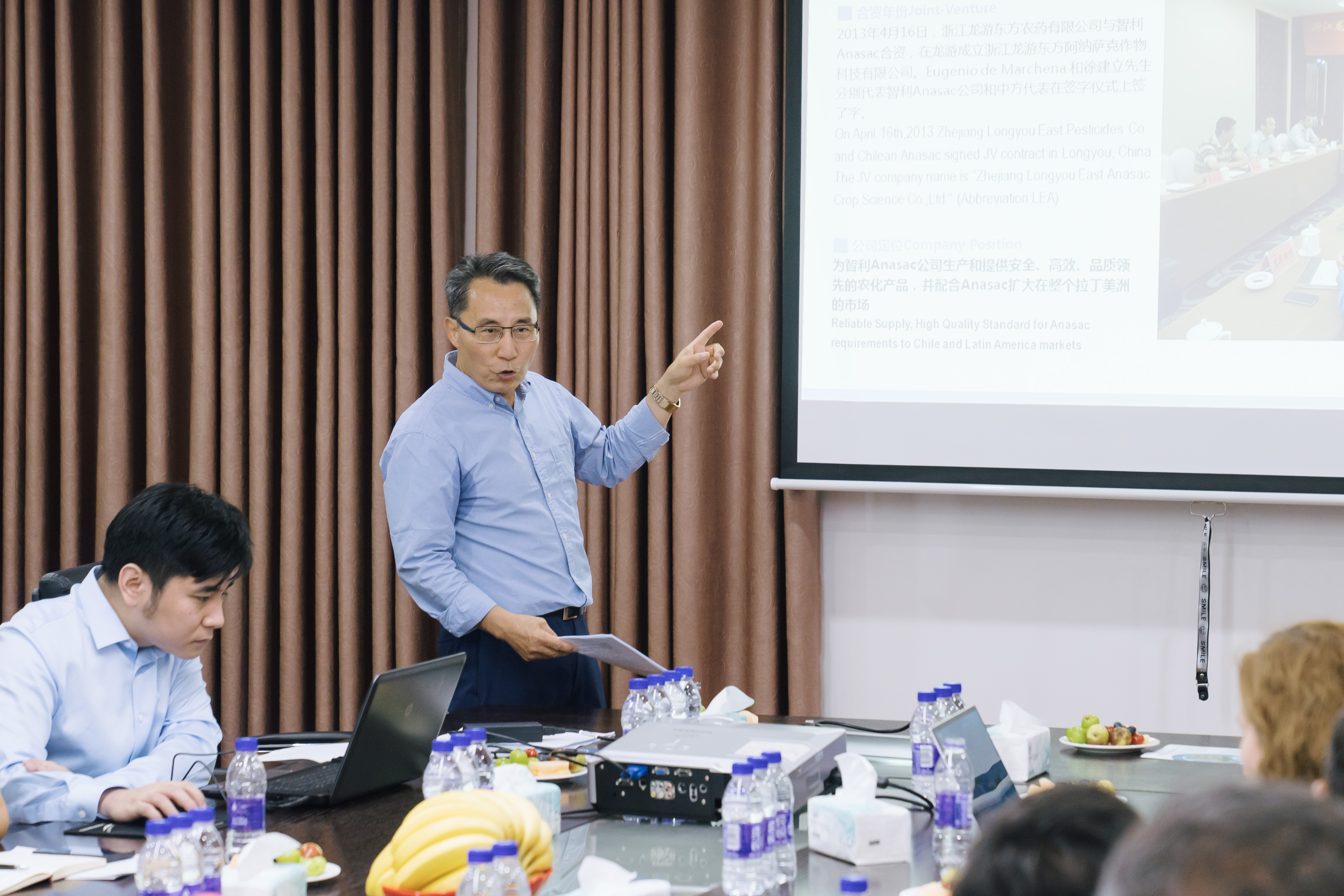 徐董事長(zhǎng)對(duì)企業(yè)發(fā)展情況作了簡(jiǎn)要介紹,公司定位為智利Anasac公司生產(chǎn)和提供安全、高效、品質(zhì)領(lǐng)先的農(nóng)化產(chǎn)品。2017年新廠的落成,標(biāo)志著企業(yè)現(xiàn)代化改造又升級(jí)了一大步,未來(lái)將會(huì)瞄準(zhǔn)生化農(nóng)業(yè)的前景,積極開發(fā)生物農(nóng)藥產(chǎn)品。